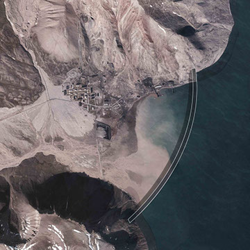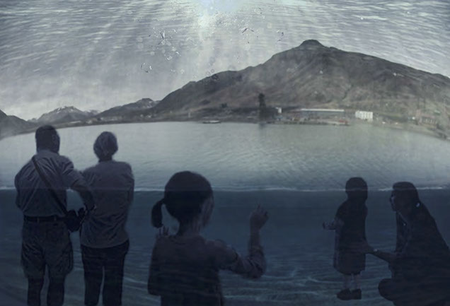 ‘Looking Glass’ proposes to build a transparent wall around Pyramiden in order to protect it from flooding. Not only this façade will allow visitors in Pyramiden to still see the glaciers and sea unobstructed, but also allow visitors in thousand years later coming in by underwater means to view the city from the sea, in other words, an inverse-aquarium.