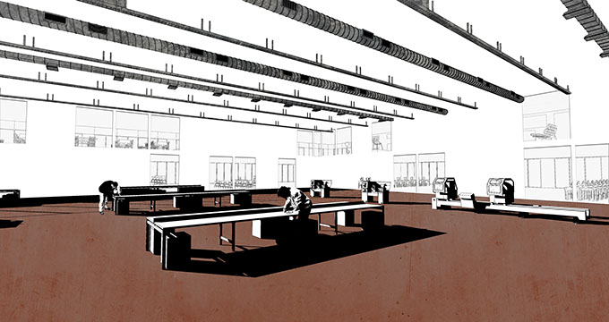 The Open Workshop transforms the existing industrial building into a complex, including studio spaces, workshops, classrooms, exhibition spaces, shops and a café. It is intended as a meeting point of innovation and the public realm, with the hope that members of the public could be involved in the innovative industry in Bath. Ultimately, the scheme is a rejuvenation of the industrial legacy of Bath aimed to ignite creative ideas that will once again change our living.